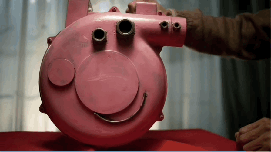 李玉宝问了一圈,终于知道啥是佩奇,并用鼓风机自制了一个“佩奇”。