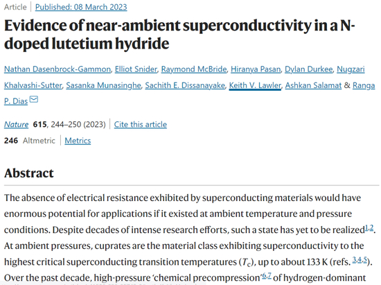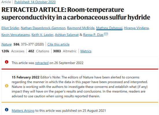 3月8日的《自然》网站上,再次登出这一研究。但无论如何,1Gpa的室温超导也同样有待其他物理学家验证。甚至由于撤稿前科,这一研究成果将面临更严格的审查。