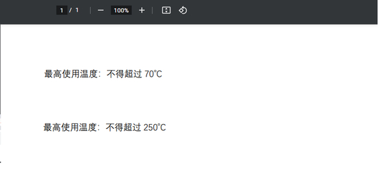 记者在宜家网站上找到了这两款产品的“最高使用温度”标签,都只有一句话,分别是:“最高使用温度:不得超过250℃”“最高使用温度:不得超过70℃”。