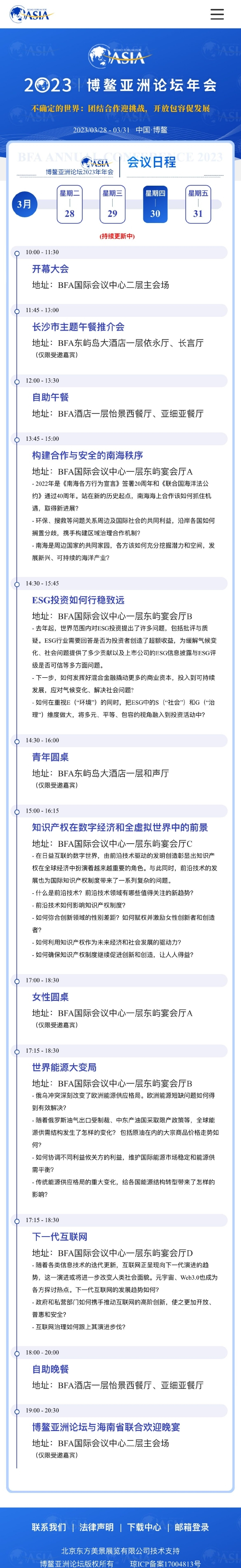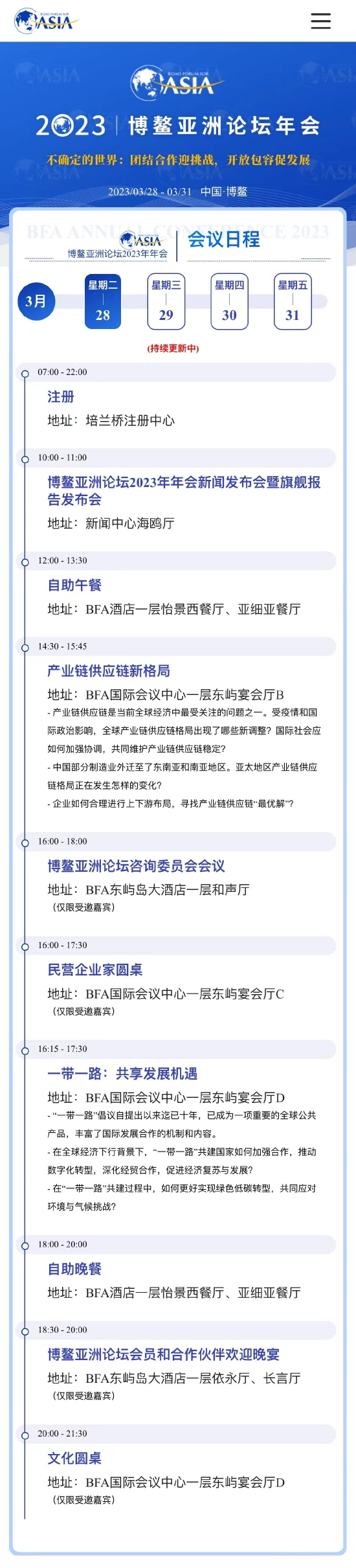 博鳌亚洲论坛2023年年会会议日程(3月28日-31日)