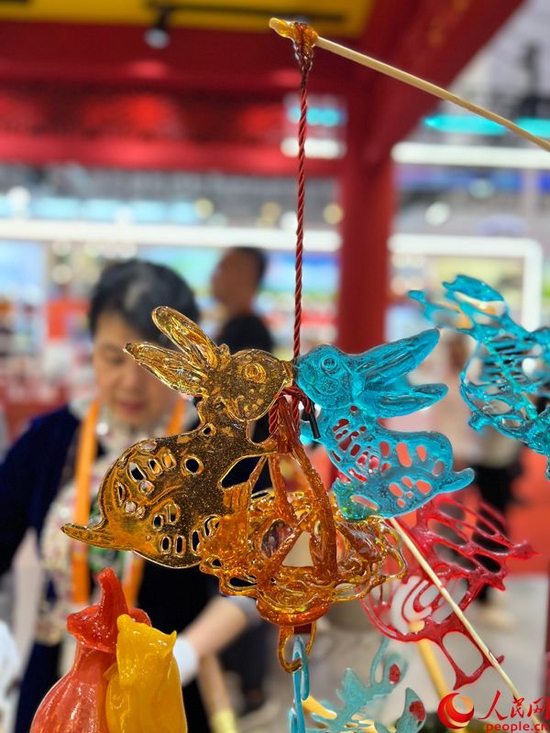 辽宁省非物质文化遗产沈阳李氏糖人亮相消博会。人民网记者 杜燕飞摄