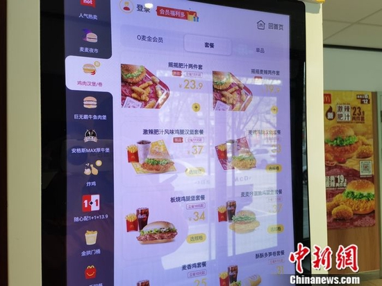 北京一家麦当劳门店点单页面。 彭婧如 摄