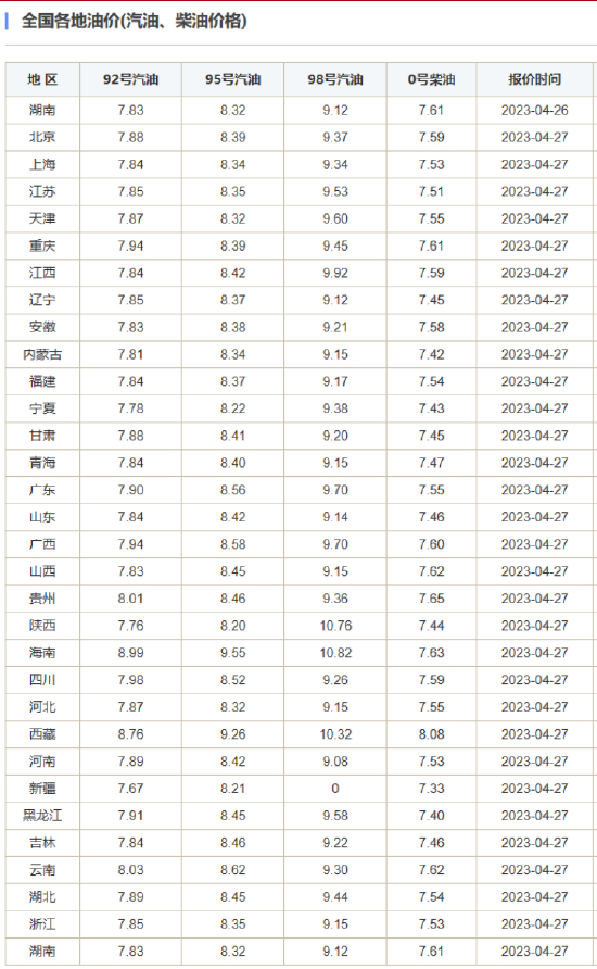 在上一轮涨价后,国内汽油累计上涨370元/吨,柴油累计上涨355元/吨。折合成升价后,92#汽油、95#汽油、0#柴油价格累计分别上涨0.29元/升、0.31元/升、0.30元/升。