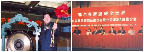 1995年,鄂尔多斯在B股上市募集到4840万美元,顺势收购了集团下属的四家羊绒厂(注:2001年,鄂尔多斯A股上市)。