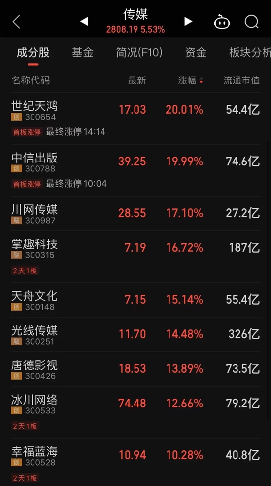 传媒板块掀涨停潮