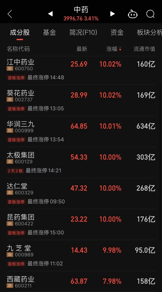 中药股集体爆发 百亿龙头股价创新高