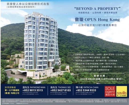 据了解,傲璇全幢仅有12户(一梯一伙),是次标售的5楼,实用面积约5154方呎,5房4套连书房、客厅、饭厅及厨房,采用开放式布局且有逾4米楼层高度。第一太平透露,傲璇自推出市场以来,已全数获顶级富豪购入收藏,从未有业主放售。