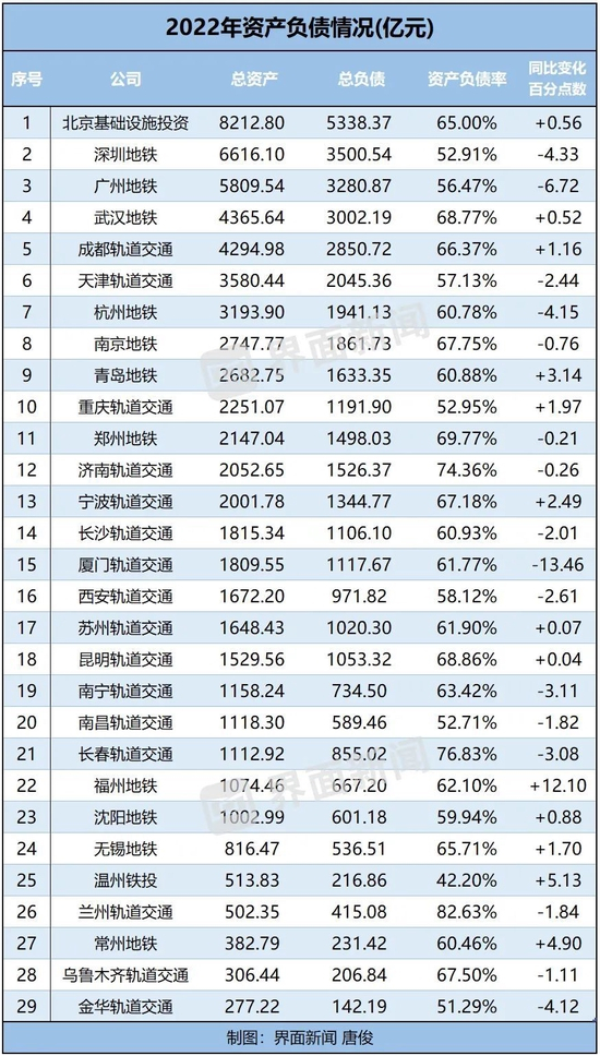 随着地铁建设推进,地铁公司的资产和负债都在增加。