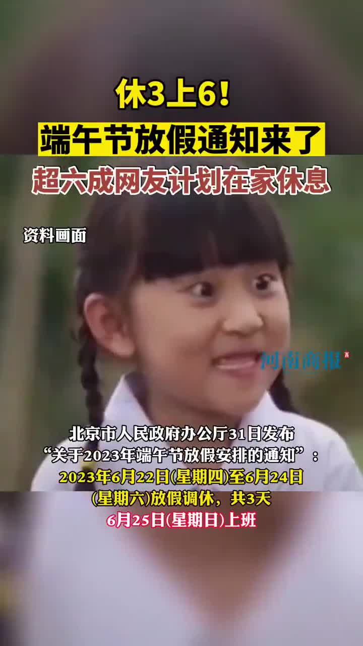 休3上6!端午节放假通知来了,超六成网友计划在家休息 放假