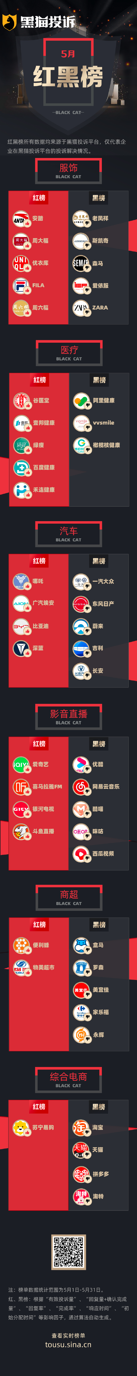 黑猫投诉发布5月份企业投诉处理红黑榜单,数据均来源于黑猫投诉平台,反映了企业在黑猫投诉平台的投诉处理解决情况。