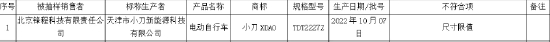 6月7日,北京市市场监督管理局发布北京市电动自行车产品质量监督抽查结果公示(2023年第2批),其中由北京锋程科技有限责任公司销售,天津市小刀新能源科技有限公司生产的小刀XDAO电动自行车抽查尺寸限值不合格。
