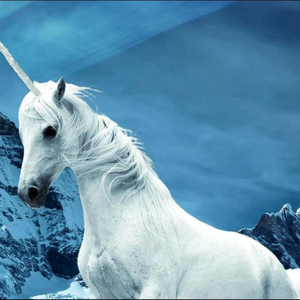 站在雪山前的白色独角兽(图片来源:免费商用图库Wallpapers)