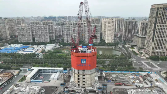 中建三局自主研发的“大国重器”空中造楼机应用在海南省第一高楼海南中心
