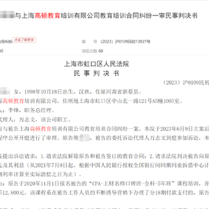 企查查显示,上海高顿教育培训有限公司为上海高顿教育科技有限公司100%控股子公司,2023年因教育培训合同纠纷由被起诉的司法案件高达115起。(北京时间 谭孜)