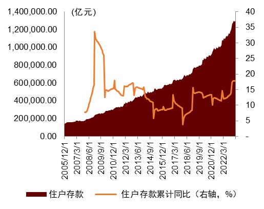 不同之处在于政策制度和还款来源不一样,我国没有再融资政策,居民更多通过储蓄存款或其他可替代性负债实现提前还贷。我国没有借新还旧的房贷再融资政策,居民提前还款的主要资金来源仍是储蓄存款。我国居民偏好储蓄存款,且在经济新周期下预防性储蓄动机提升,2022Q4央行储户调查问卷[2]显示倾向于“更多储蓄”的居民占61.8%(图11)。2023年以来居民住户存款累计同比增速在17%以上(图12),具备一定的早偿能力。可替代性贷款资源可能也是还款来源。疫情以来信贷需求整体较弱,银行的消费贷和经营贷整体定价较低约在3-4%。居民存在通过消费贷、经营贷等较低成本的可替代性贷款资源置换高成本存量房贷的动机。我们观察到在2020年Q1-2022年Q1,一般贷款利率和房贷利率之间存在明显的负利差(图13),且银行业普惠型小微贷款平均增速在29%(图14),对应的提前还款率也处于相对高峰。需要说明的是,监管对此类“消费贷、经营贷置换房贷”进行过多次风险提示,但不排除套利空间可能仍存在。