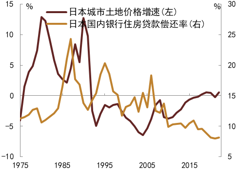 上世纪九十年代日本房价下跌而提前还贷增加。通过考察日本国内银行住房贷款偿还率走势,我们发现上世纪八九十年代日本经历了两次明显的提前还贷过程,第一次发生在1981- 1987年,日本国内银行住房贷款偿还率从低点的10.6%持续上升至24.3%,背景是日本经济放缓而利率持续下行;第二次发生在1991-1995年,日本国内银行贷款偿还率从低点的12.7%持续上升至20%,背景是日本房价下跌而利率水平大幅下滑。尤其值得注意的是第二次提前还贷,它发生在日本房地产进入下行周期以后,随着房地产价格持续下跌,居民对房地产预期发生根本改变,不但贷款购房意愿大幅下降,而且加快用存款提前归还银行贷款。