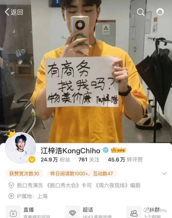 江梓浩同样也分享一些生活动态,不过看上去他急于找工作,在微博背景图以及小红书置顶笔记中,都放置了寻求商务合作的信息。