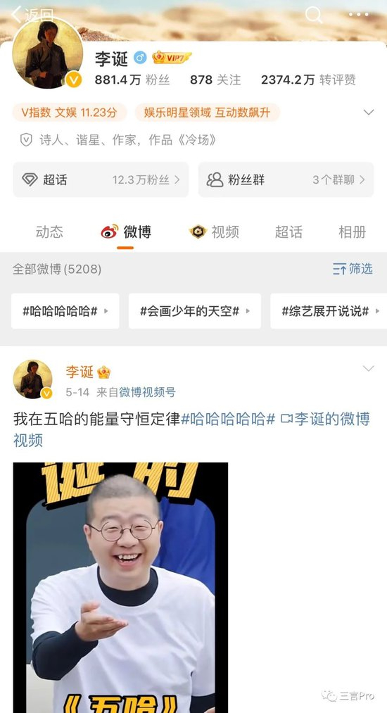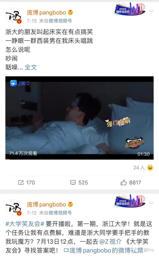 还有庞博现在也在参加综艺节目,近期社交平台内容中已经鲜有脱口秀相关,除了分享日常外,就是自己参加的综艺了。