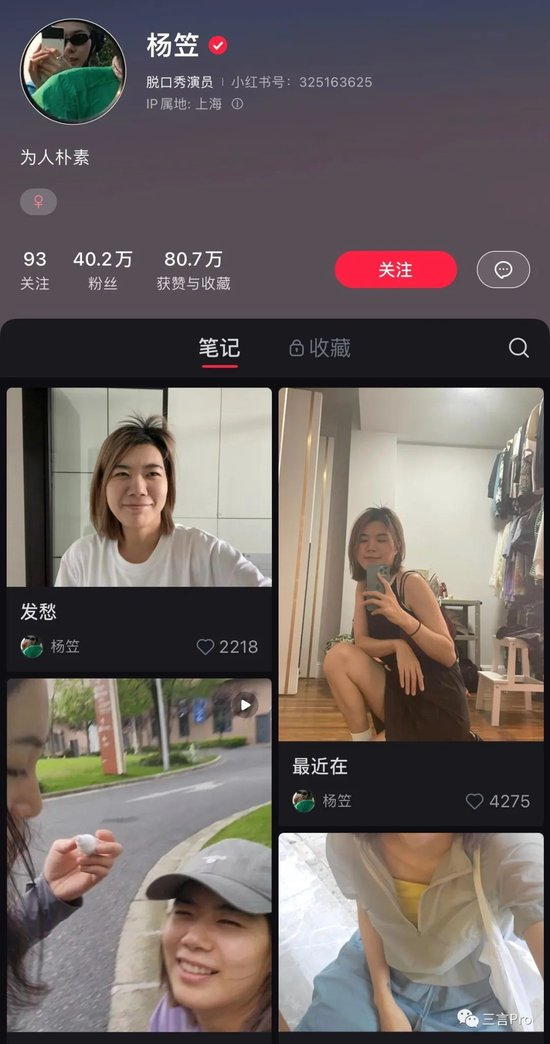 比如杨笠现在经常会在小红书上分享一些日常;