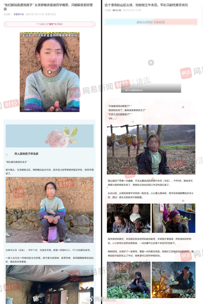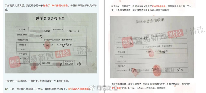(左边表格来自“关爱帮小队”,右边表格来自西安善行基金会公众号“善行公益”)