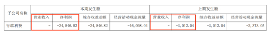 新浪科技查询寒武纪年报显示,行歌科技2021年没有营收,净亏损0.3亿元;2022年同样没有营收,净亏损扩大至2.48亿元。