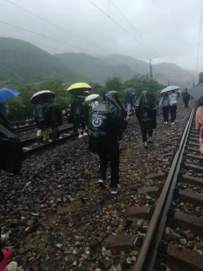 听探过路的乘客说,目前有公路、铁轨、山路这3个方向,轨道上的淤泥已经能没到膝盖,山上破碎的石头很锋利、容易划伤。他们决定沿着109国道走。