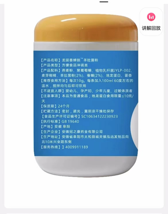 在方方(化名)她奶奶沉迷的某个主播直播间内,记者发现,有一款名为“龙涎香蝉脱羊肚菌粉”的产品,销售记录显示,该产品售出了3564份。在该产品搭配的直播讲解视频中,或许是为了规避风险,主播并未直接讲解该产品的功效,但画面里与该产品一起放着的一张纸上写着各种常见病名称“三高”、“贫血”、“心力衰竭”、“心肌缺血”、“心肌炎”、“心梗”、“尿毒症”等,主播解释到,有前期症状的,服用该产品一天一次,有后期症状的,服用该产品一天两次。