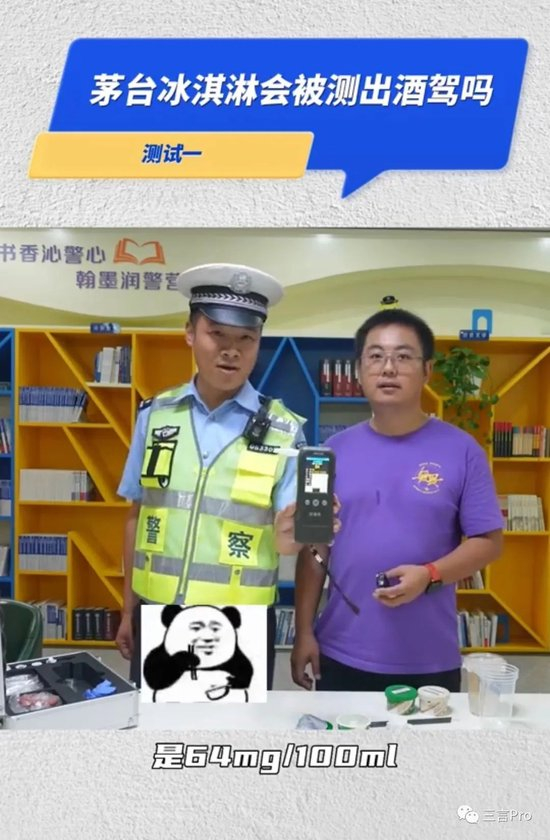 @平安湖州于2022年8月8日曾经做过一个实验,让受测者在吃完一小盒茅台冰激凌、喝一小部分“茅台咖啡”(笔者注:添加了茅台酒的咖啡,并非瑞幸联名产品,且试验中未告知茅台酒含量)后,使用酒精检测仪测量体内酒精含量。