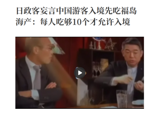 流传的视频片段显示,日本两名政客在一档电视节目中,就“中国全面禁止日本水产进口”,提出要对中国游客进行“报复”。