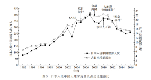 图表出处:论文《2000-2019年中日国际旅游的反向性、市场翻转及成因》,陕西师范大学