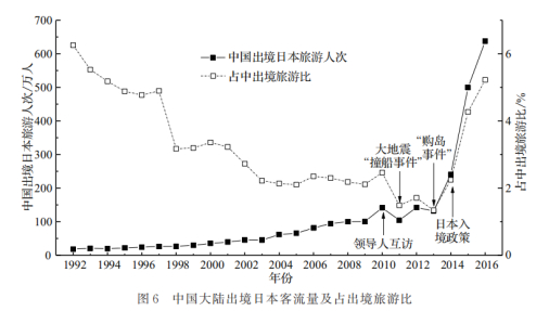 2010年,发生“日本巡逻船钓鱼岛冲撞中国渔船事件”,中日关系空前紧张、中国前往日本的游客大幅下跌;此后,2011年日本爆发大地震、并引发福岛第一核电站核泄漏;2012年日本策划了“购岛”闹剧,这都再次造成了中国赴日旅游市场的滑坡。