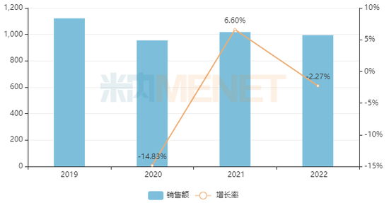 米内网数据显示,受疫情影响,2020年中国城市公立医院、县级公立医院、城市社区中心及乡镇卫生院(简称中国公立医疗机构)终端神经系统化药销售额下滑近15%,2021年小幅回温,2022年再度下滑,销售规模接近1000亿元,较2019年巅峰期缩水超126亿。