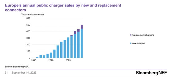 图注:欧洲新增充电桩预测。来源:彭博新能源财经