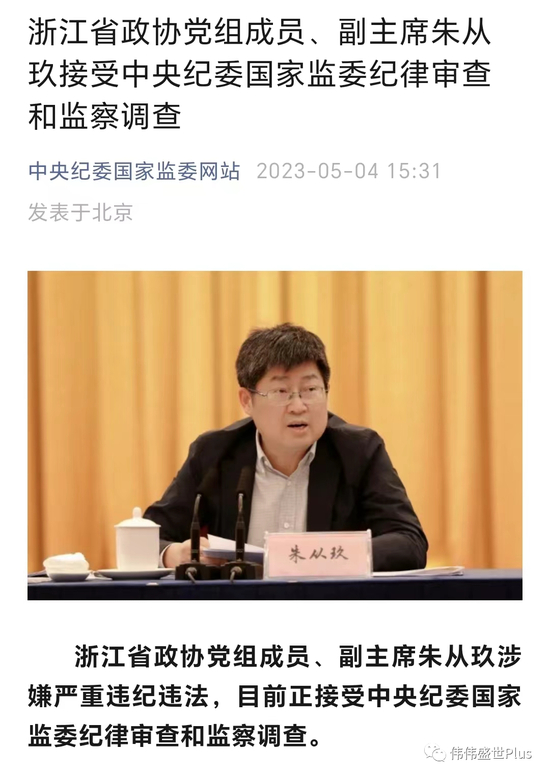 据知情人士透露,朱从玖是4月28日被中纪委带走的,一同被带走的还有其从事私募基金行业的夫人。在其被查前两天4月26日晚和4月27日都还有参加公开活动。