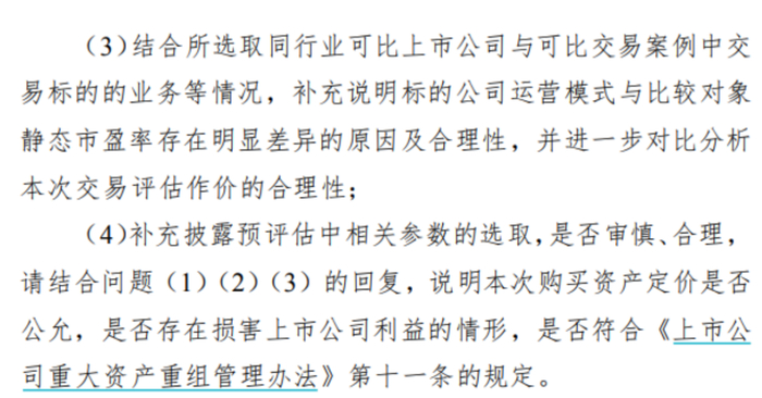 深交所还要求公司说明选取可比公司的合理性、公司高市盈率的合理性,最终说明此次购买资产定价是否公允,是否存在损害上市公司利益的情形。