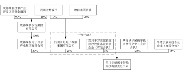 官网显示,华鲲振宇由成都高新投资集团、申万宏源长虹股权投资基金等牵头成立混合所有制高科技创新企业,国资控股60%.