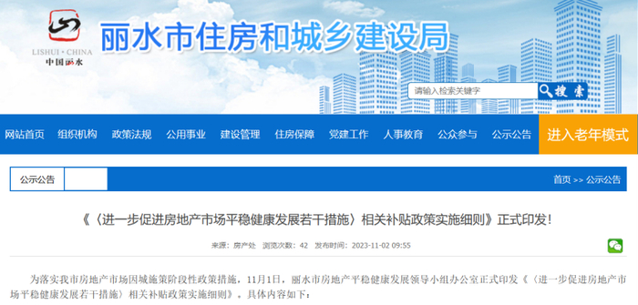 11月1日,丽水印发《〈进一步促进房地产市场平稳健康发展若干措施〉相关补贴政策实施细则》。