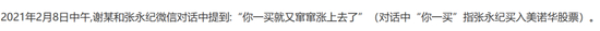 同时,张永纪与其妹在微信群中的聊天记录以及与第三方谢某、姚成志之间的微信、短信往来记录均显示,张永纪前述交易活动与内幕信息高度吻合。