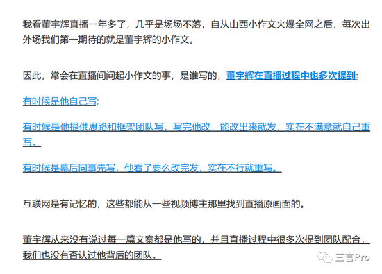而且,董宇辉从来没有说过每一篇文案都是他写的。