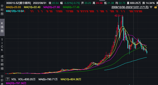 爱尔眼科的总市值也在持续缩水,截至12月21日,爱尔眼科总市值1471.09亿元,较去年末缩水约750亿元,较2020年12月31日缩水超1615亿元。