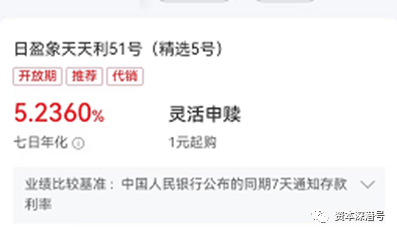 比如中信银行代销日盈象天天利51号(精选5号)。该产品1元起购,截至12月26日,该产品的近七日年化收益率已经达到5.236%。