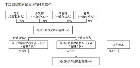 也就是说,在此次调整前,马云为蚂蚁集团实际控制人。