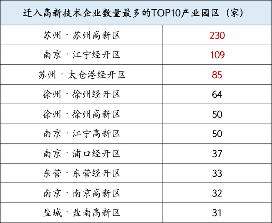 前三的苏州高新区、南京江宁经开区、苏州太仓港经开区,包括位列第10的盐城燕南高新区