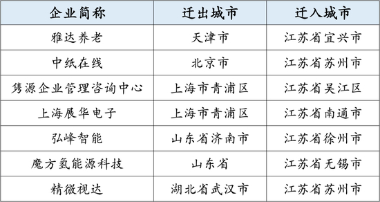 于是我给大家列举了小部分从外省迁入江苏省的企业名单