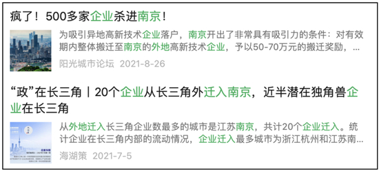 可以看到即使是诸如上海、北京这样一线城市的企业也在往江苏迁入