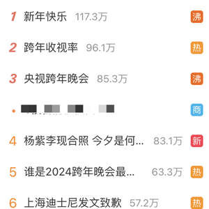 据不完全统计,2023年12月31日晚,有至少12台晚会展开正面battle。而从昨夜到今日早间,有关跨年晚会的热搜不断。