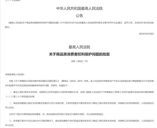 此外,在境内,购房者依法拥有法定的“超级优先权”。去年4月20日,最高人民法院公布了《最高人民法院关于商品房消费者权利保护问题的批复》(法释[2023] 1号)(简称《批复》),明确了商品房消费者以居住为目的购买房屋并已支付全部价款,主张其房屋交付请求权优先于建设工程价款优先受偿权、抵押权以及其他债权的,人民法院应当予以支持。同时,最高人民法院也指出,在房屋不能交付且无实际交付可能的情况下,商品房消费者主张价款返还请求权优先于建设工程价款优先受偿权、抵押权以及其他债权的,人民法院应当予以支持。