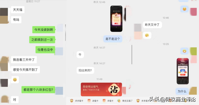 “作为支付宝五福的老玩家,倒不是为了这点钱,就是很多平时不怎么联系的朋友,你总得找个理由联系吧。每年这时候,通过集福换福,能重新熟络起来”,00年出生的莉莉的观点非常有代表性。“今年我还发了会说话的红包,特别有意思。”