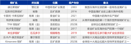 表1:中资在海外的九大在产铜矿山