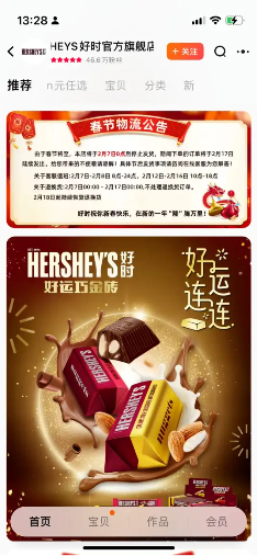 甚至在好时巧克力的天猫旗舰店首页赫然显示着,其将于2月7日0点后停止发货,期间下单的订单将于2月17日陆续发货,直接选择在情人节“躺平”。